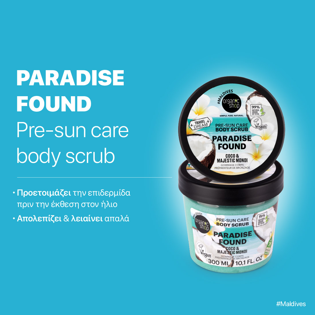 Scrub Σώματος Organic Shop Travel Dream με Καρύδα & Monoi, 300ml