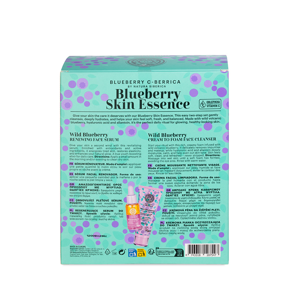 Η σειρά Blueberry Siberica βασίζεται στα σπάνια λευκά άγρια blueberries της Σιβηρίας, γνωστά για την υψηλή περιεκτικότητά τους σε αντιοξειδωτικά, βιταμίνες και θρεπτικά συστατικά. Σε συνδυασμό με σύγχρονα ενεργά συστατικά, προσφέρει ενυδάτωση, προστασία και αναζωογόνηση, καλύπτοντας τις ανάγκες της σύγχρονης επιδερμίδας.