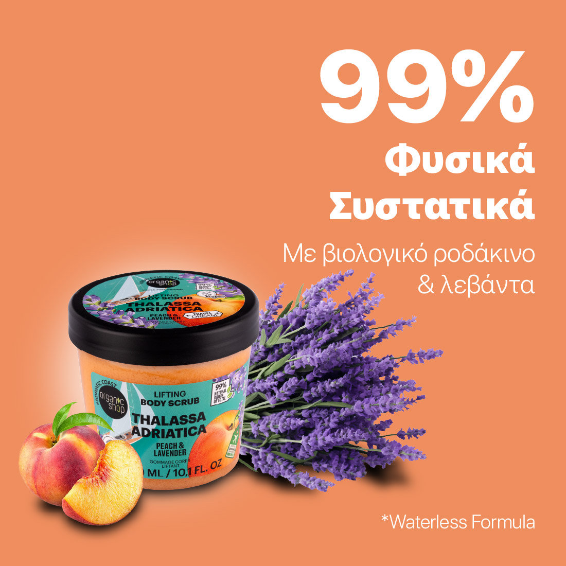 Ανακάλυψε το Scrub σώματος Travel Dream με Ροδάκινο & Λεβάντα και ζήσε τη δροσερή αύρα της απόλυτης χαλάρωσης! Η απαλή σύνθεση με βιολογικό ροδάκινο απολεπίζει ήπια τα νεκρά κύτταρα, ενώ το εκχύλισμα λεβάντας ηρεμεί τις αισθήσεις και αφήνει το δέρμα λείο, απαλό και αναζωογονημένο.